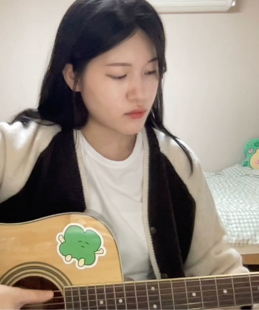 악기를 배우는 것에 흥미가 많아 여러 악기에 도전해보던 중, 통기타의 맑은 소리에 매력을 느껴 배우기 시작했습니다. 처음 코드를 잡았을 때는 손가락에 상처가 나기도 했지만, 연습할 수록 굳은 살이 생기며 더 아름답고 다채로운 소리를 낼 수 있었습니다.