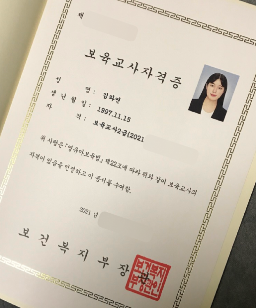 대학 졸업 후 분당 소재의 직장어린이집에서 3년간 담임교사로 근무했습니다.