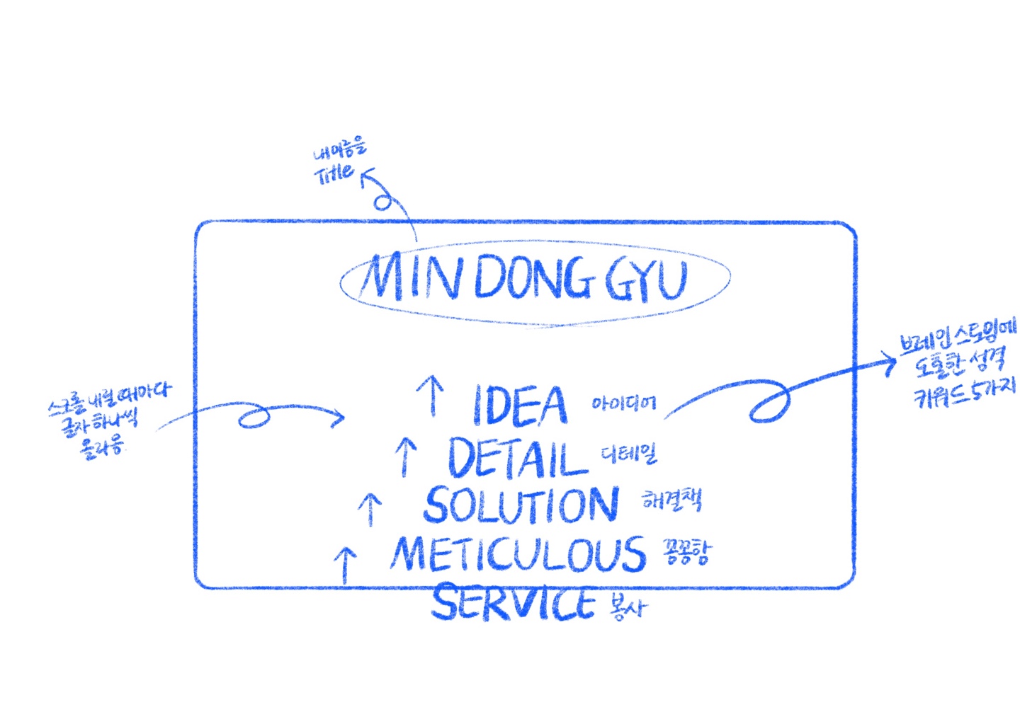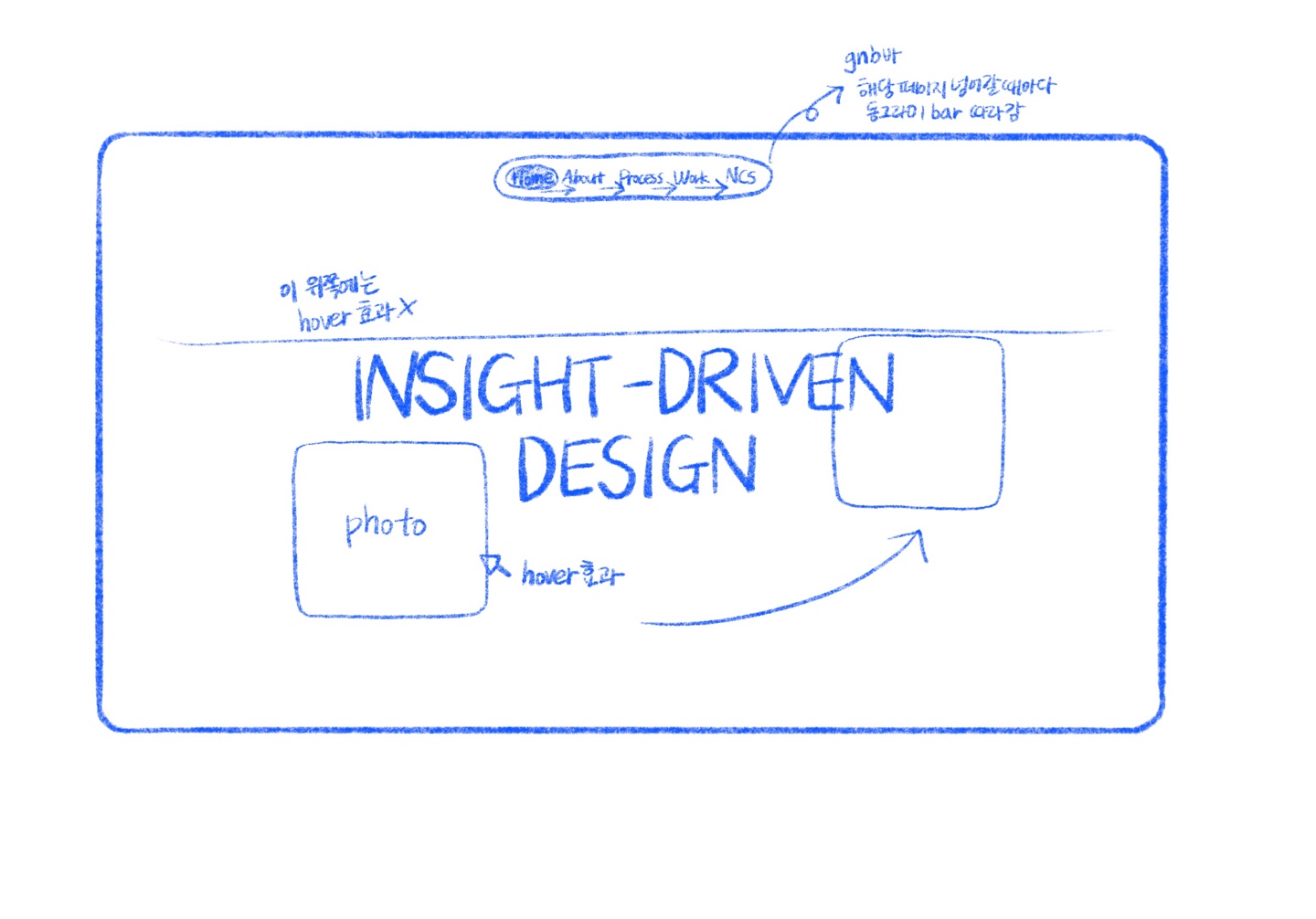 메인페이지는 제목(슬로건)을 중앙에 배치하여 제목 주변에 마우스 호버 효과를