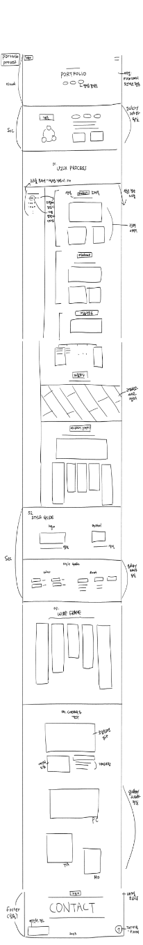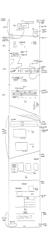 컨셉에 맞게 페이지별 아이디어 스케치했습니다.