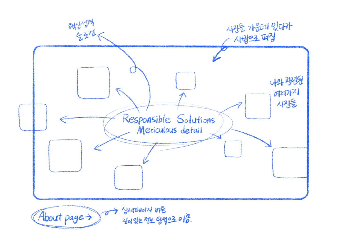 메인페이지는 제목(슬로건)을 중앙에 배치하여 제목 주변에 마우스 호버 효과를