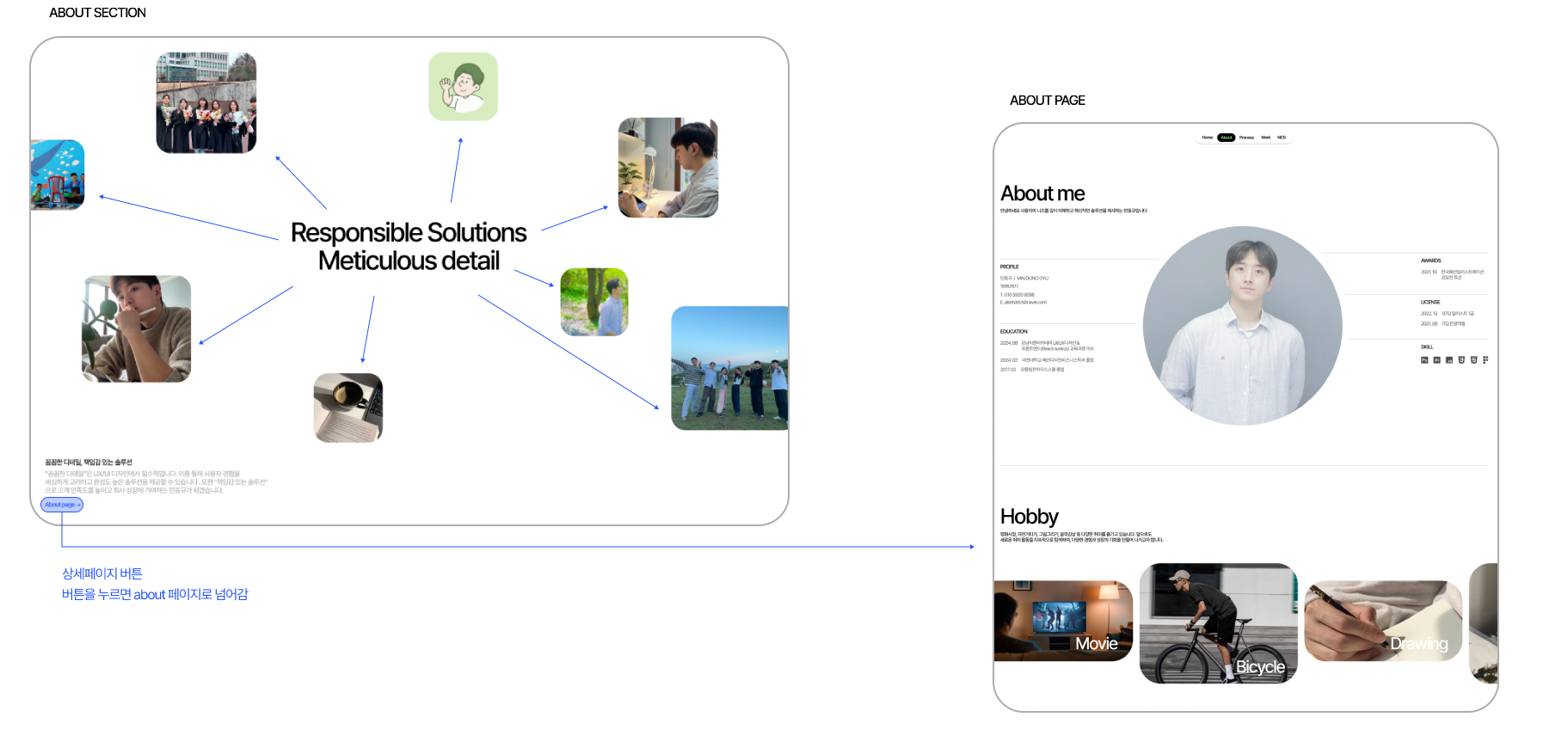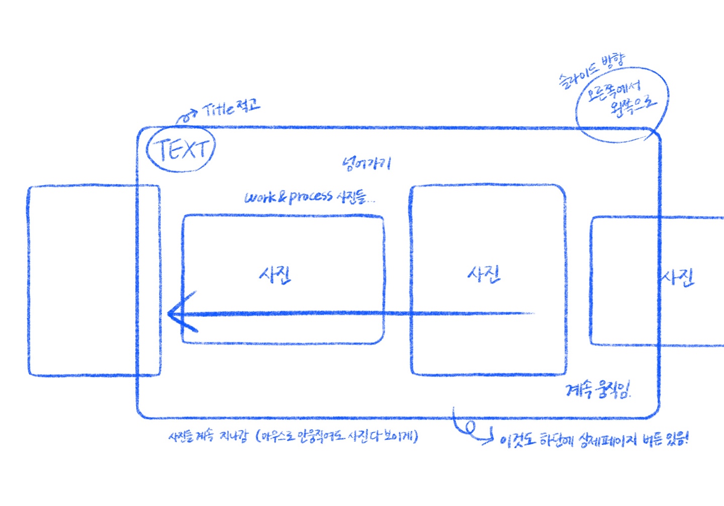 제목 주변에 부드럽게 사진이 나타나도록 설계하여 메인페이지가 단순히 정적인